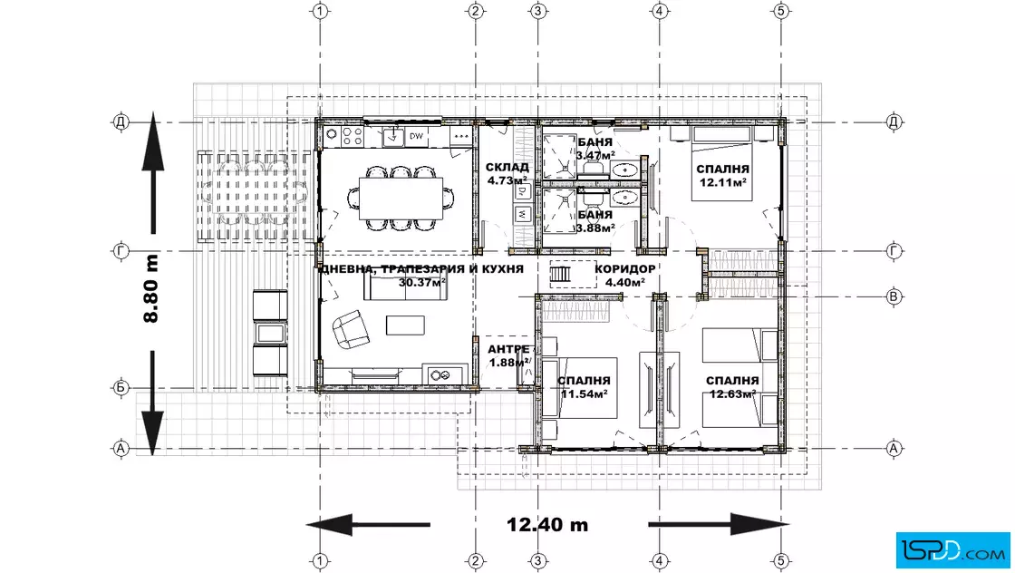 Проект на мострена къща проектирана от архитектурно студио Ай Ес Пи Дигитален Дизайн