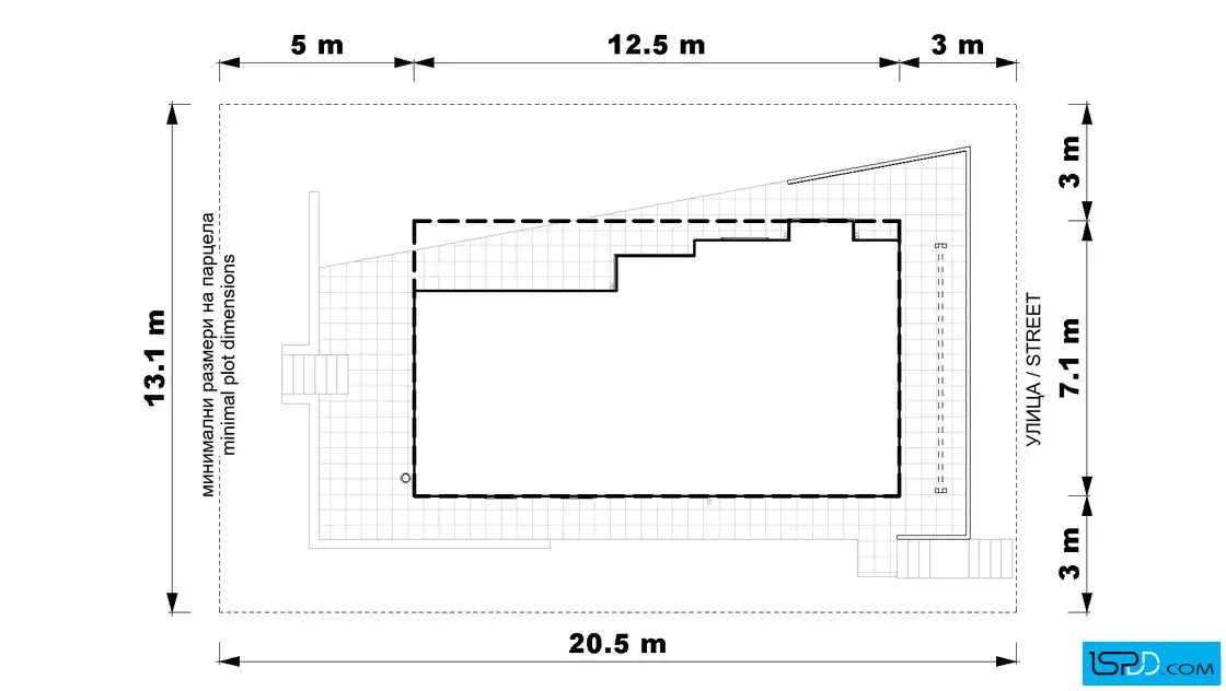 Тази ваканционна къща е разположена в подножието на Витоша, където динамичният и стръмен терен изисква архитектура, която умело се вписва в естествените линии на планината. Формата ѝ е подчертана от изразителен двускатен покрив с голям наклон, който не само следва планинския силует, но и придава характерен алпийски облик. Масивната покривна линия приютява фасади, облечени в комбинация от каменна и дървена облицовка – естествени материали, които създават усещане за топлина и връзка с околната природа.